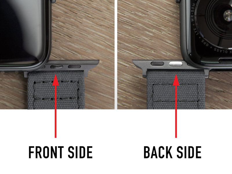 Slide the adapter into the slot on your Apple Watch until you hear a click. To remove it, press and hold the strap release button on the back of the watch and slide the band out.