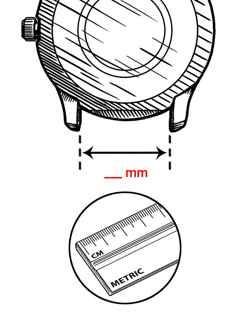You'll need to measure the lug width of your watch — that's the space between the two small posts (lugs) where the strap attaches to the watch case. Lay your watch flat, remove the old strap if possible, and use a ruler or caliper to measure that gap in millimeters. Common sizes are 18mm, 20mm, and 22mm. We also offer 16mm, 19mm, 21mm, 23mm, and 24mm widths in some straps. If you're not sure, just send us a message with your watch's make and model and we'll help you figure it out.