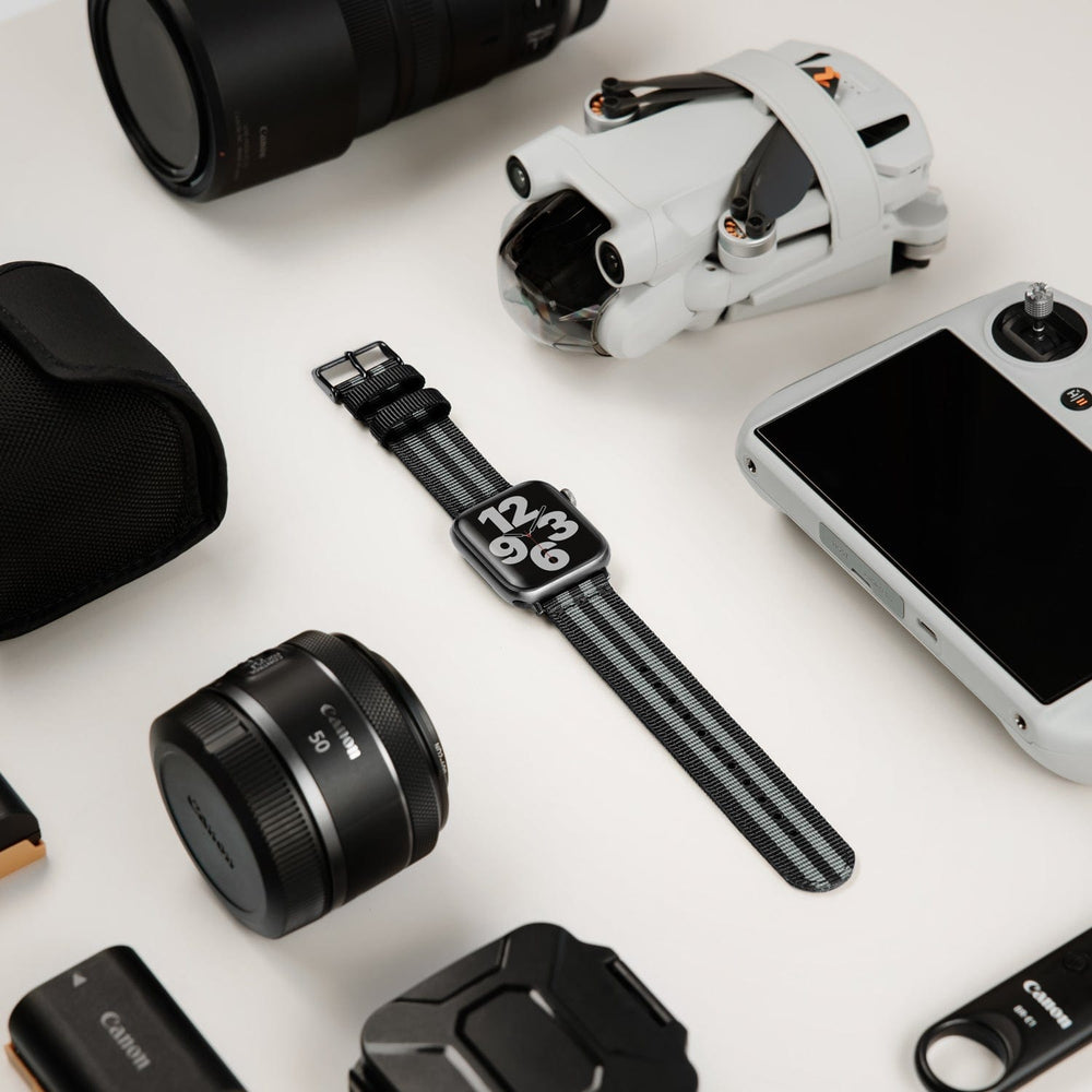 Apple Watch Nylon - Black and Gray (James Bond)/Stainless, ARC-AWNYL-BLKGRYS42, ARC-AWNYL-BLKGRYS38