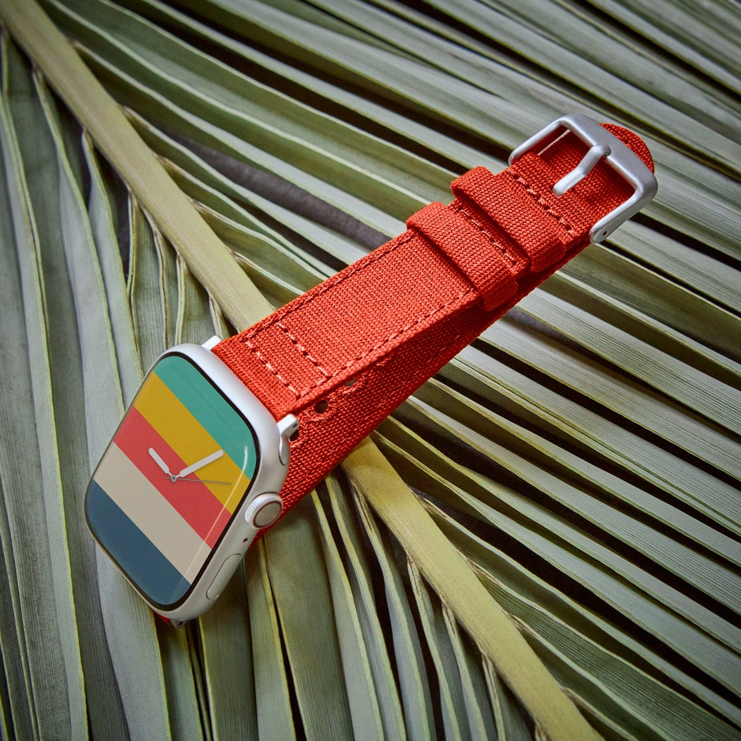 With top-notch craftsmanship and a clean, minimalist design, the Apple Watch canvas strap adds a vintage touch to any Apple Watch. It features an Archer-signed matte stainless steel buckle, and each hole is carefully embroidered with precise stitching that won't get pulled or frayed.