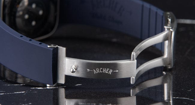 A timeless Archer-signed clasp in durable, brushed stainless steel, and silver and gray color options adds the perfect finishing touch to complement your watch.