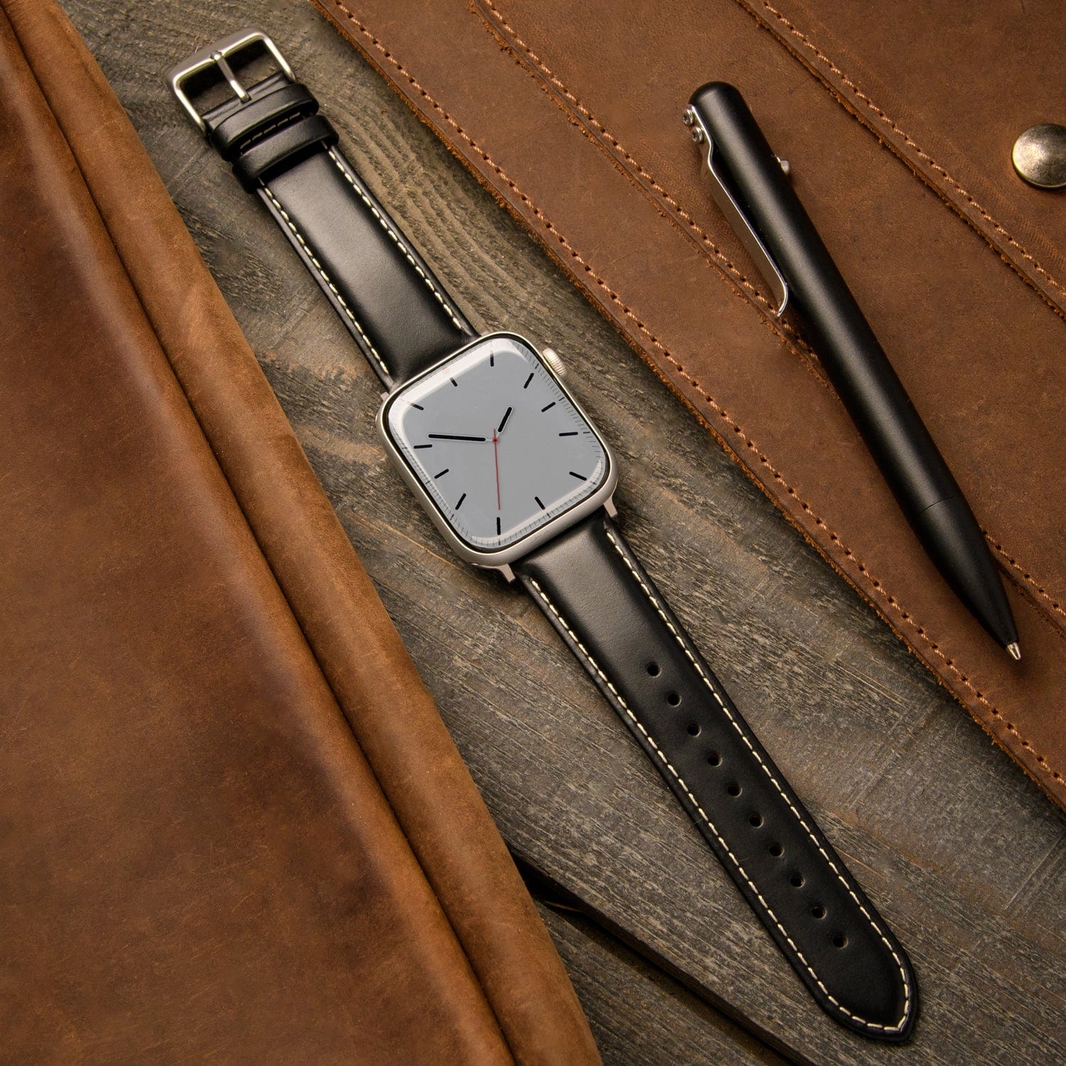 Apple Watch Leather Watch Band - Black/Natural/Silver Aluminum