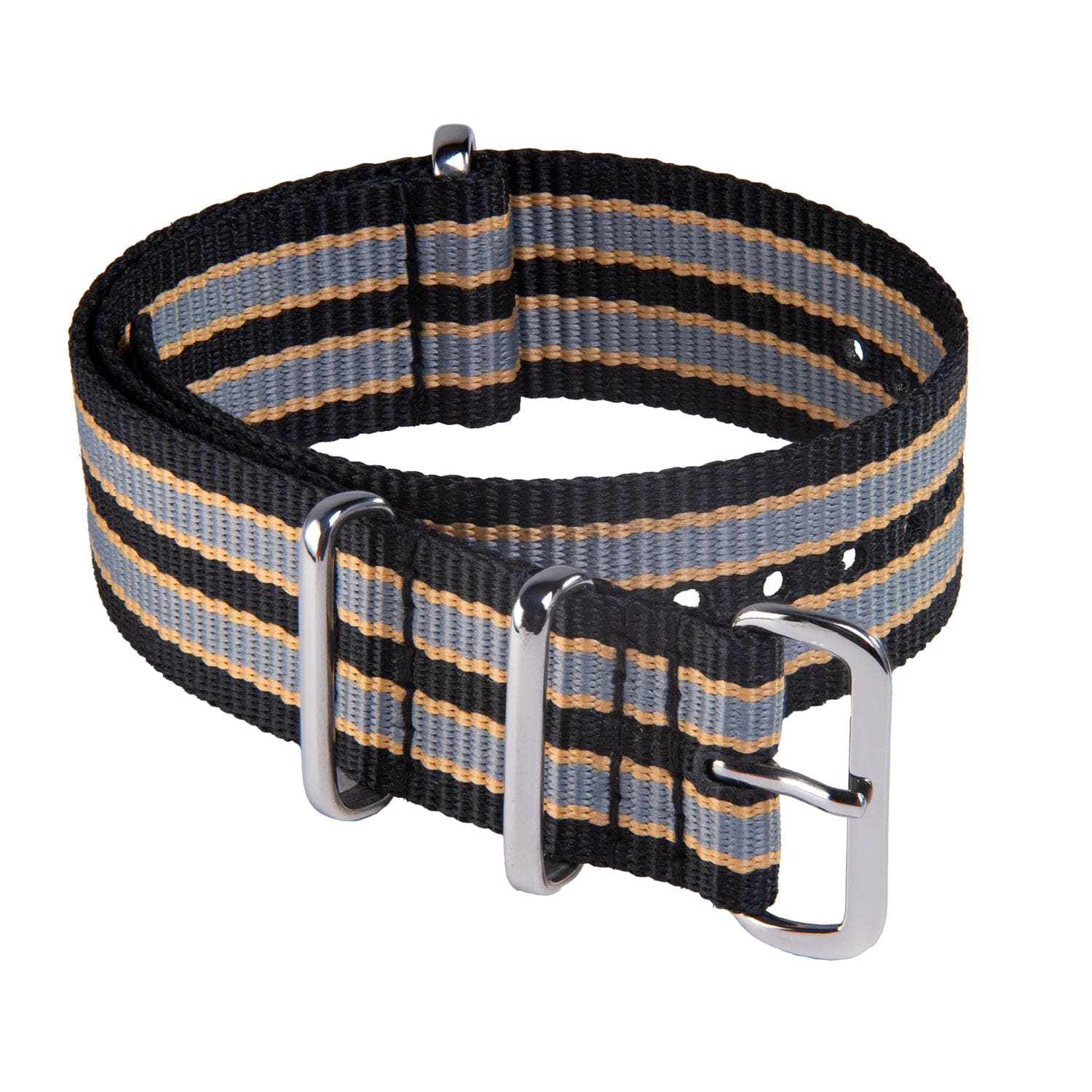 Classic Military Style Nylon Watch Band - Black/Gray/Gold
