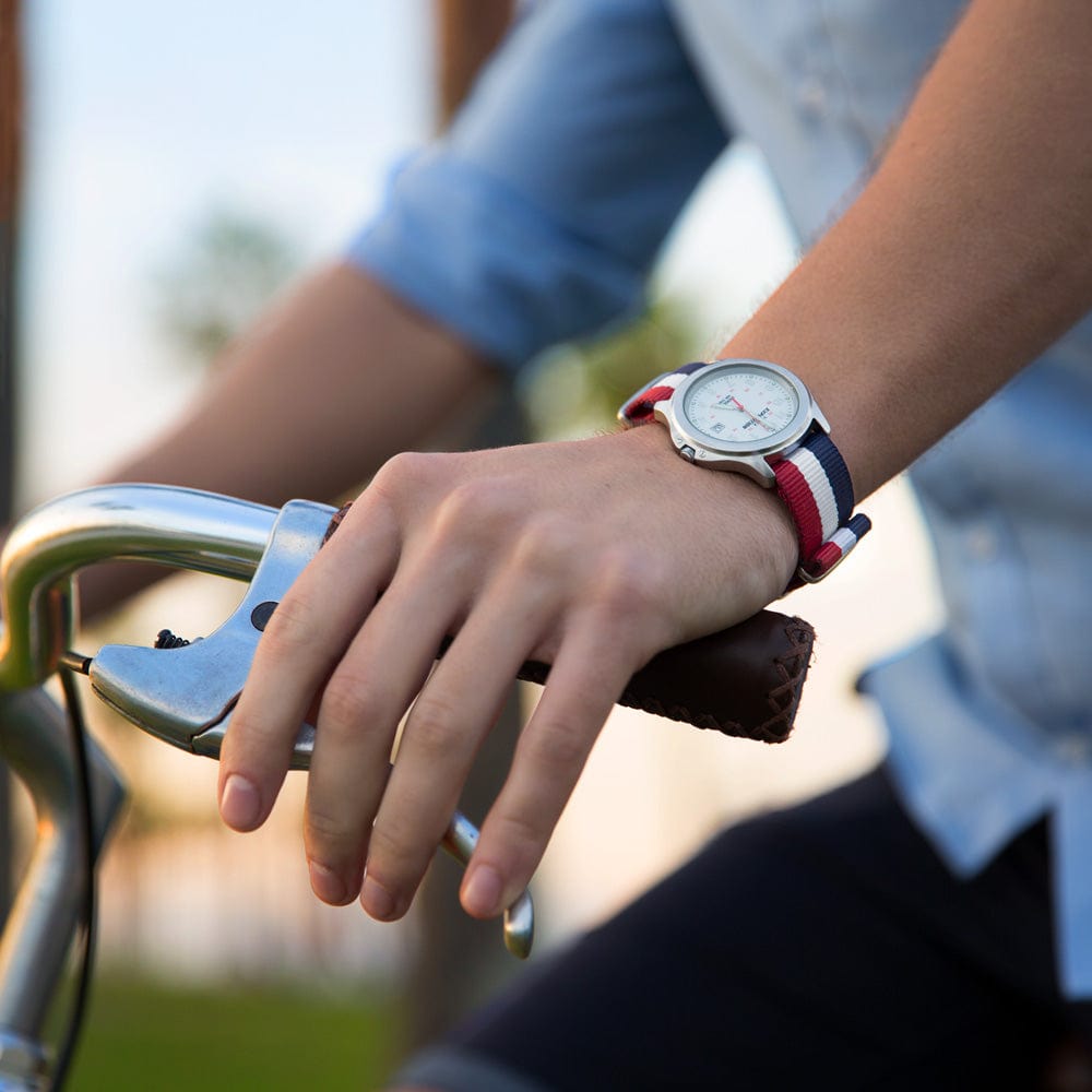 First issued by Britain’s Ministry of Defense, and even worn by the likes of 007 himself, nylon military watch straps were designed to be tough, lightweight, and failsafe. Our own Classic Military Style Nylon Strap is no different.