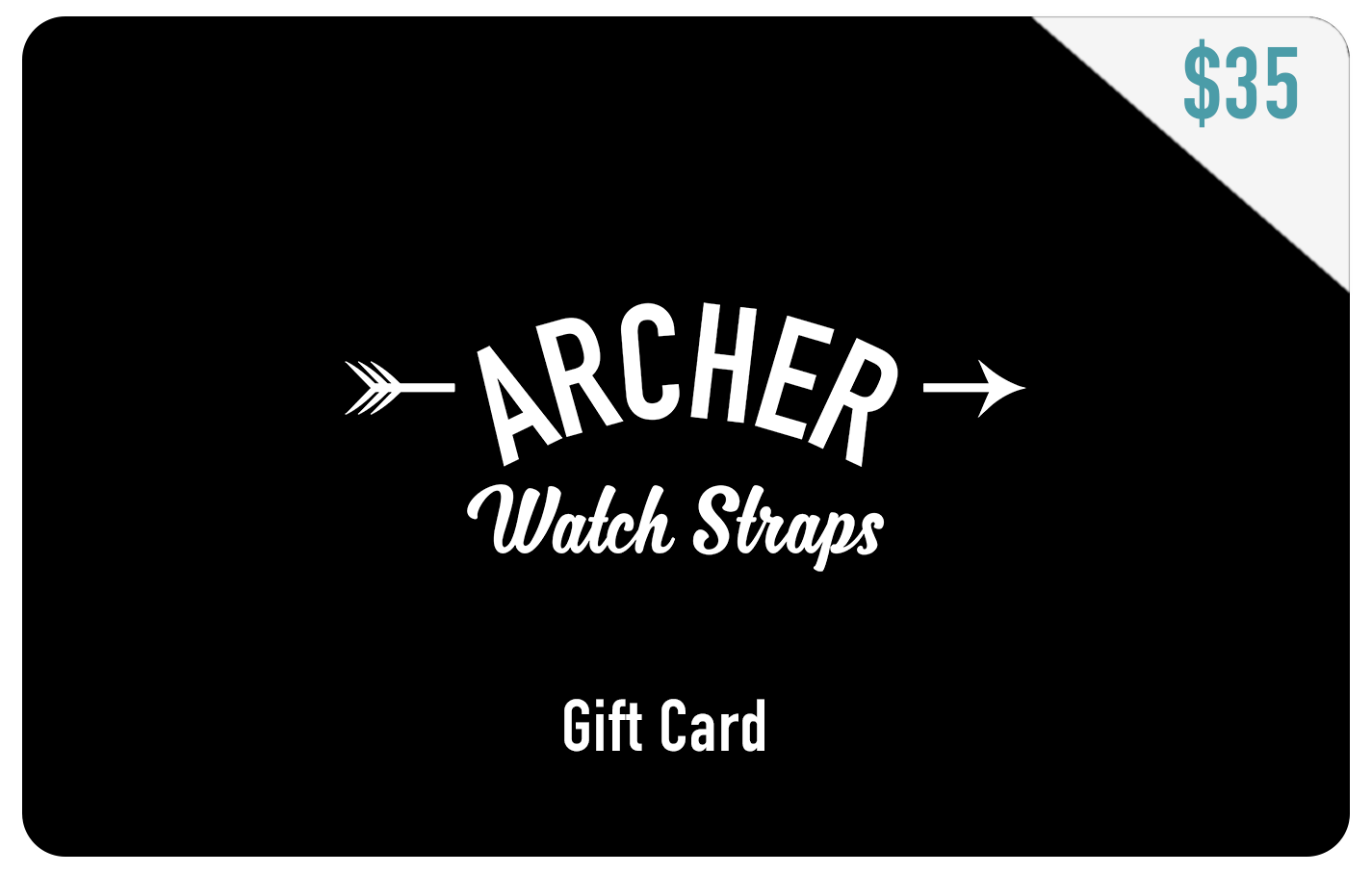 Shopping for someone else but not sure which strap to give them or what size their watch is? Give them an Archer Watch Straps gift card.