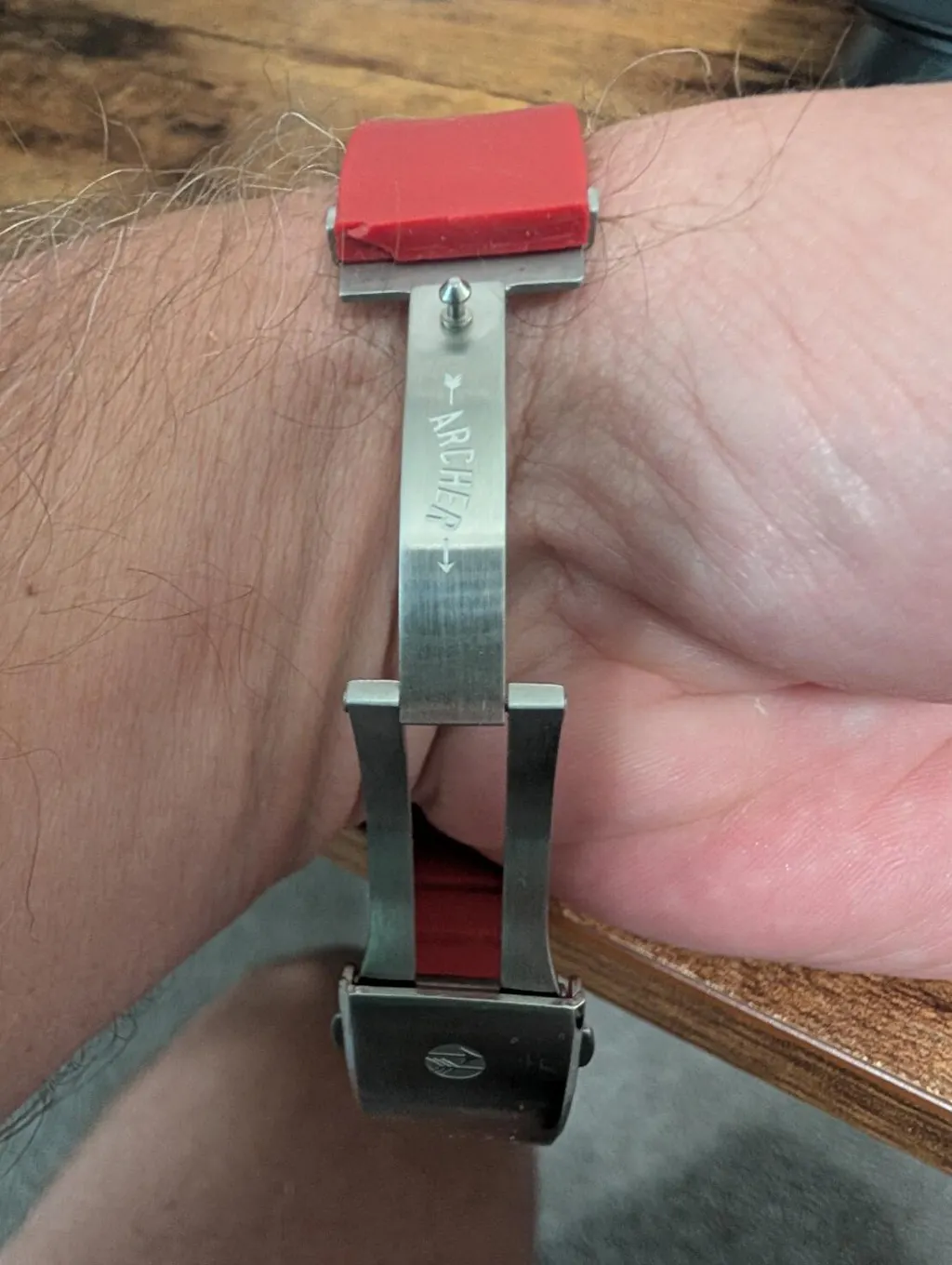 A timeless Archer-signed clasp in durable, brushed stainless steel adds the perfect finishing touch to complement your watch.