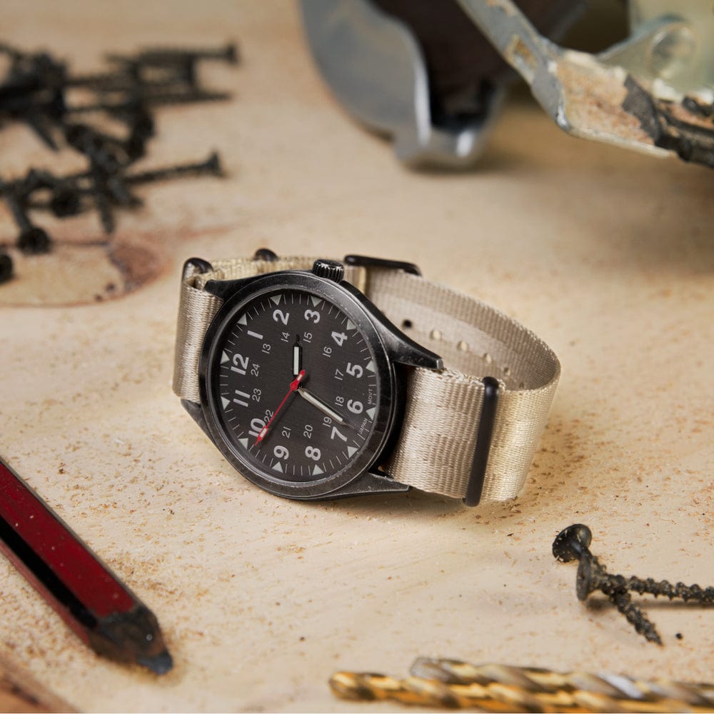 Seat Belt Nylon Military Style Watch Band - Khaki, Black Hardware